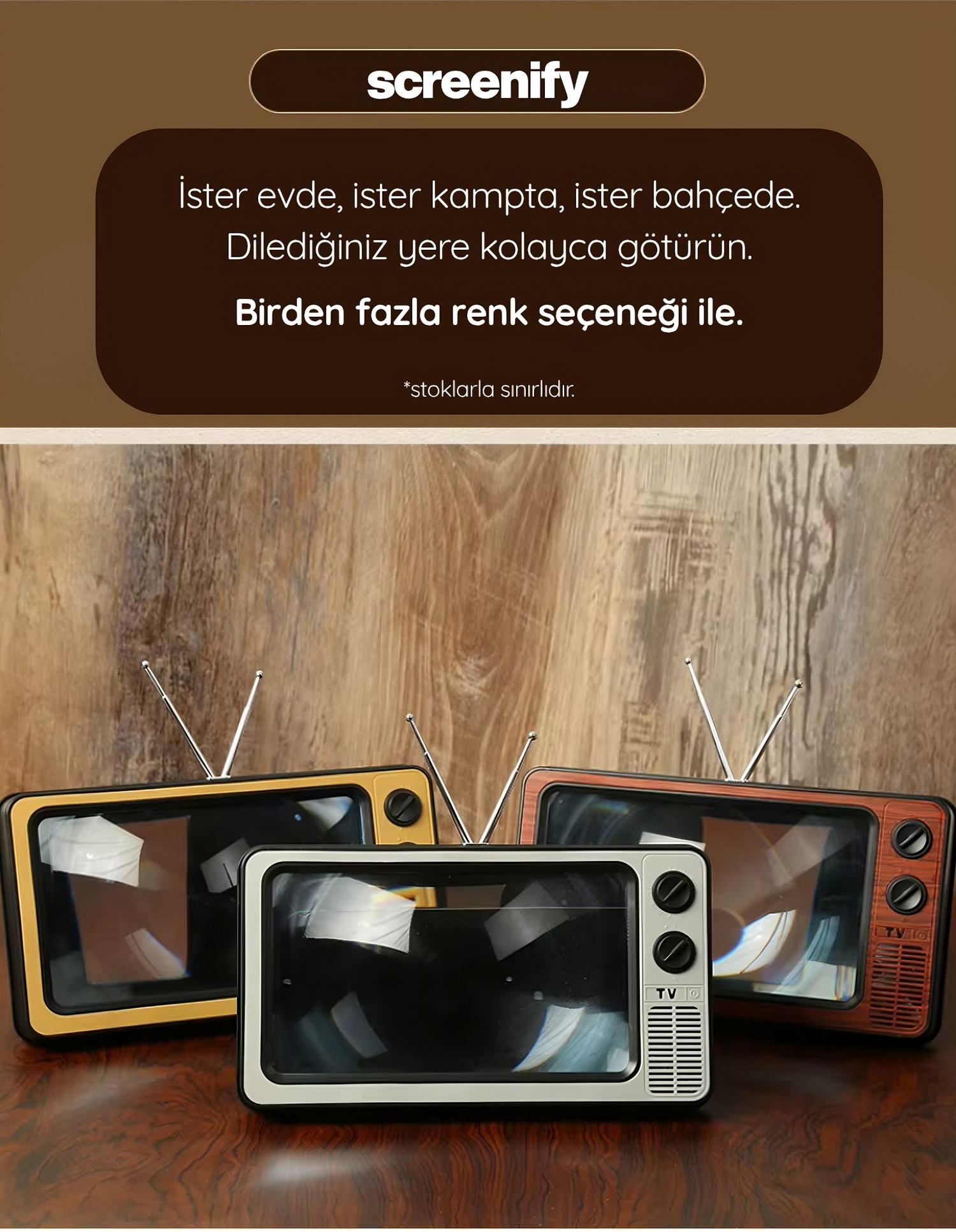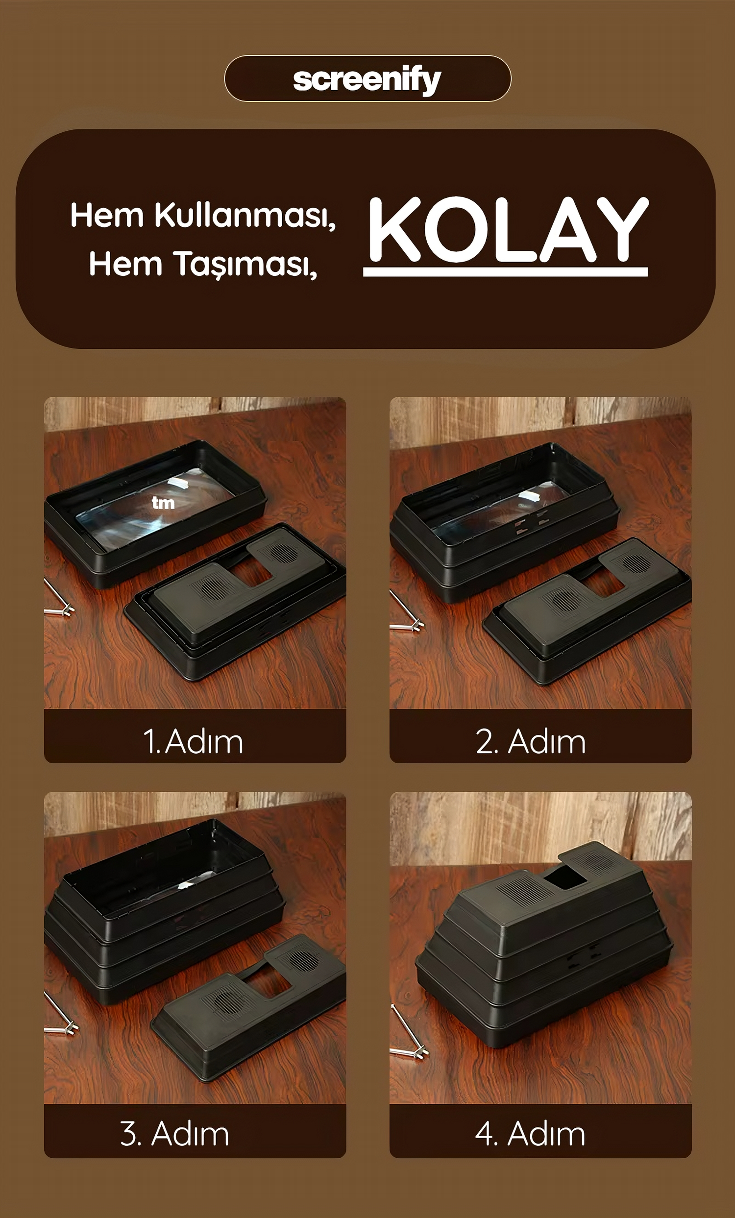 Ekran büyütücümüz hafif ve katlanabilir olduğundan çanta veya sırt çantasında kolayca taşınabilir. Birçok müşteri seyahatlerinde yanlarında götürür, uçak yolculuklarında kullanır veya televizyon gerekmeden aile film gecelerinde kullanır.